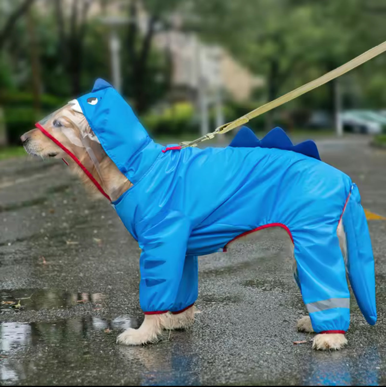 🦖 3D Dinosaur Dog Raincoat – Full Body Waterproof Jacket for Large Dogs