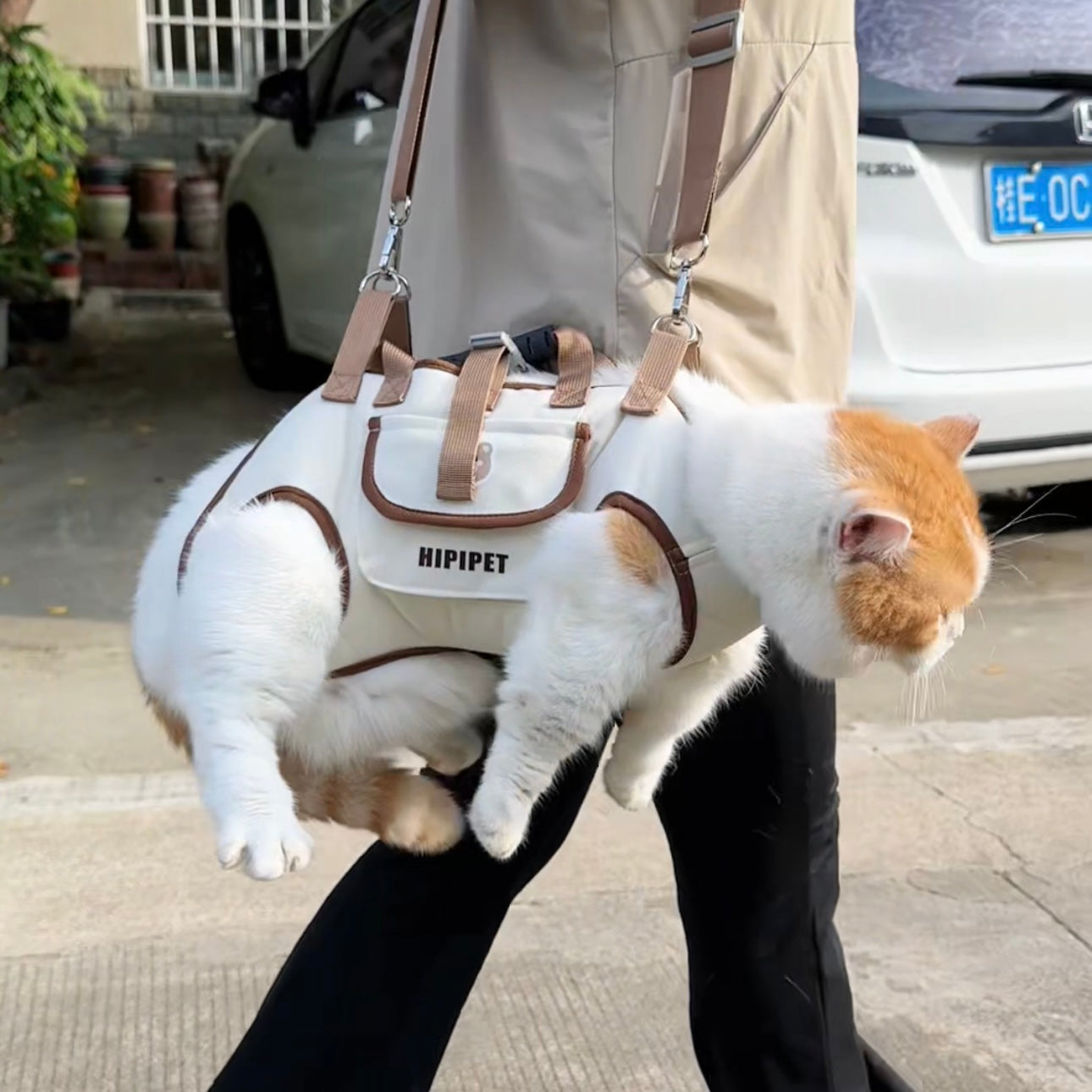 It is a fashionable pet set that can put toys and snacks into the pocket.